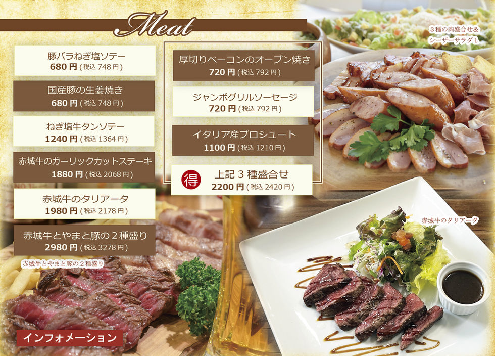 赤城牛を使用したハンバーグやステーキは特におすすめです。他にもパスタやピザ、デザートなども取り揃えておりますので、ぜひ当店自慢の一品をご賞味ください!また、駐車場も完備しておりますので、伊香保温泉・草津温泉帰りにもお立ち寄りください。 ペット同伴でのお食事もガーデンorテラスで楽しめます。ご予約をお願い致します。